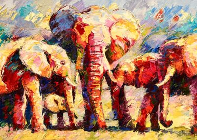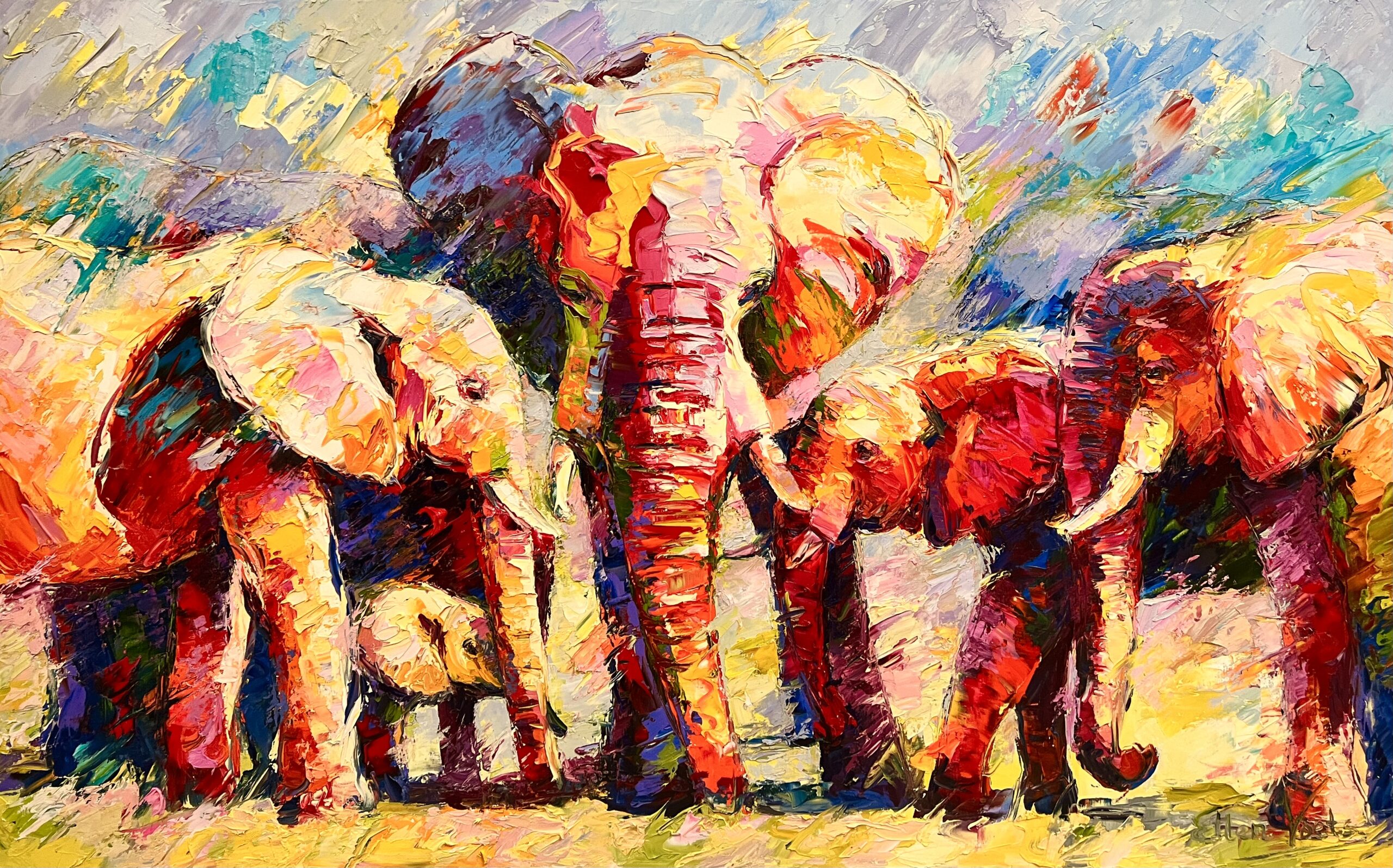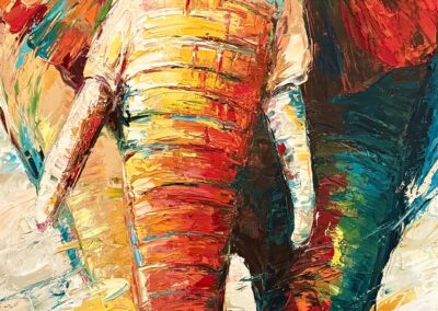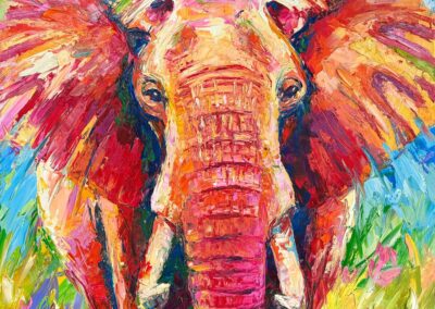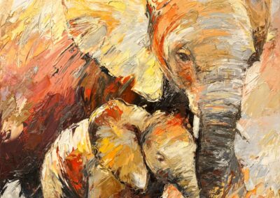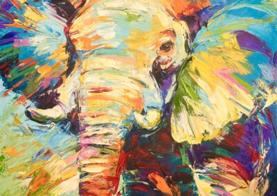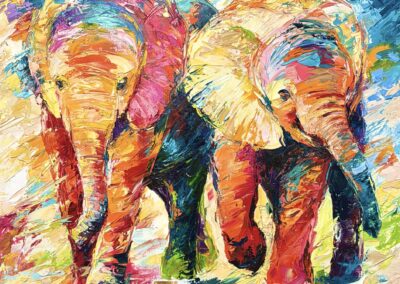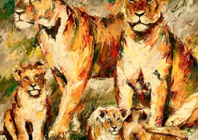 Wilde dieren schildert ze zoals ze hen in de natuur observeert; opgaand in hun eigen omgeving. Net als tijdens een safari moet je in de schilderijen soms wat scherper kijken om ze goed te zien, tot ze ineens voor je opdoemen.