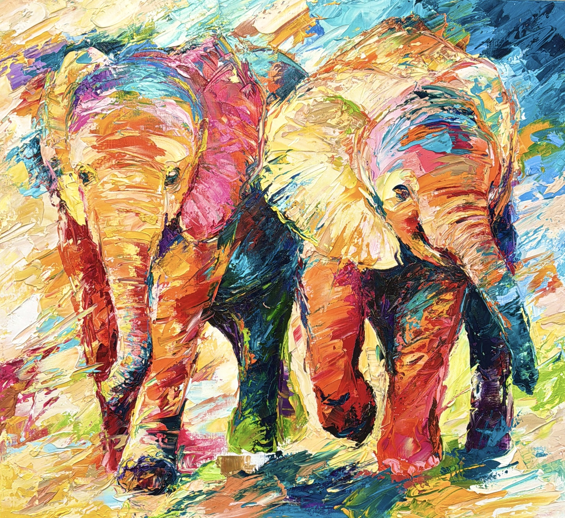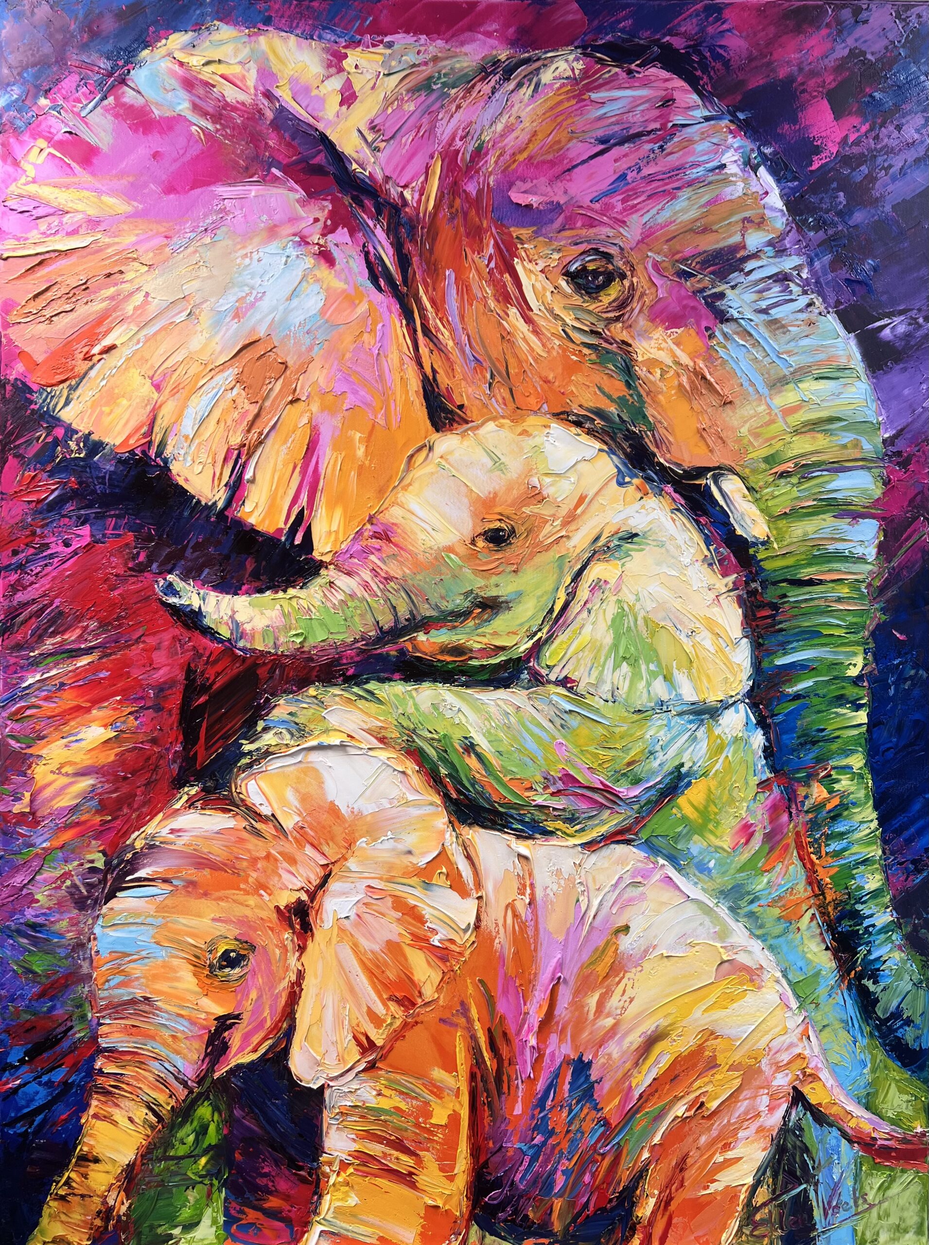 De techniek van Ellen Voets straalt leven en dynamiek uit. Ze schildert met ruige streken, zodanig dat het onderwerp lijkt te bewegen op het linnen.